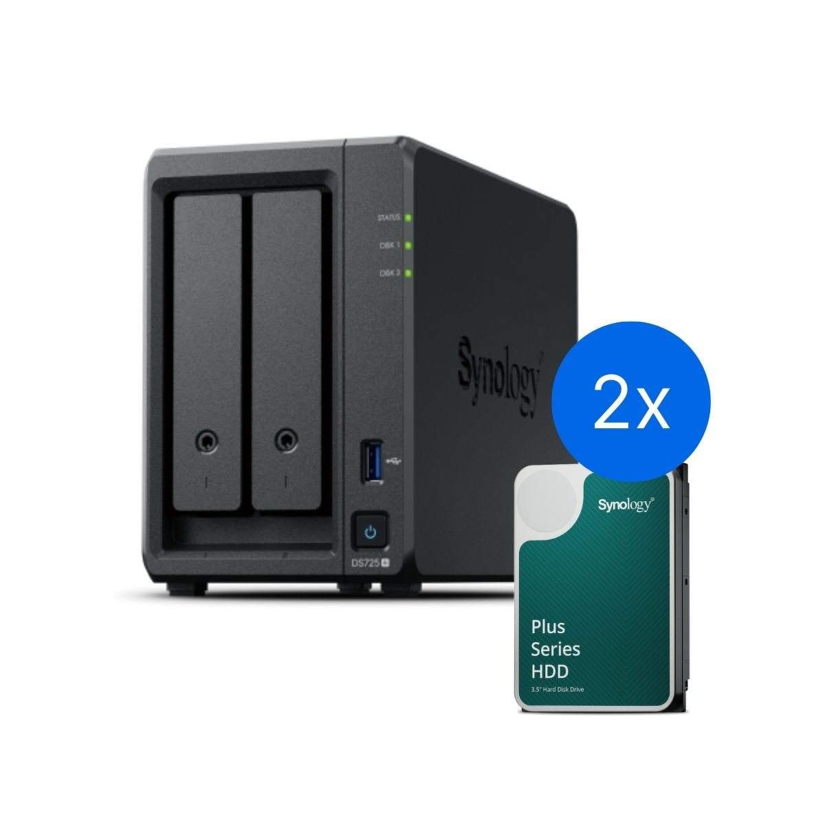 Synology DS725+ /4T | 2-zatokowy serwer NAS w zestawie z dyskami o łącznej pojemności 4TB, Tower
